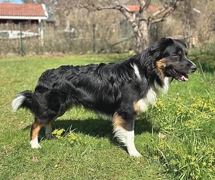 Detta är Rulles andra kull. Från den första behöll jag en hanvalp, Chabbe, som nu är 4 år. Chabbe är en trevlig hund som tävlar i Personsök och Spår, elitklass. Han blev årets aussie i sök 2021/22 och nummer 4 i spår.”